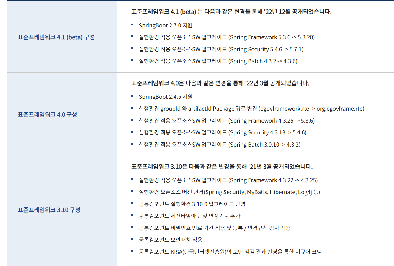 최근, 표준프레임워크 4.0 구성 부터는 SpringBoot 를 지원하기 시작하며 차근차근 변화를 밟아 나가는 것 같습니다.